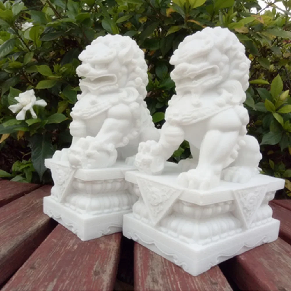1 SET Exquisite Carving White Marble Dogs Guardian Lions Statues Home Decor Decorative Objects
